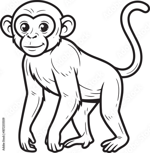 Fototapeta premium Black and White Monkey Line Art Vector Illustration