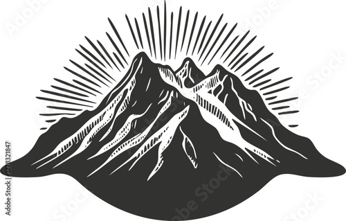 Obraz premium Black and white mountain illustration with sunburst design.