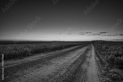 © Abner, Fototapeta premium Black and white night photography - Dirt road