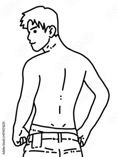 © mansum008, Fototapeta premium black and white of cute man cartoon for coloring