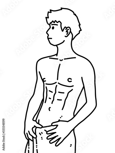 © mansum008, Fototapeta premium black and white of cute man cartoon for coloring