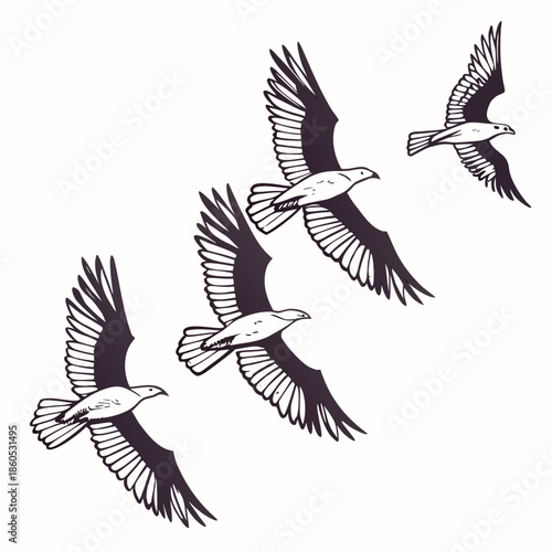 © AMINA 1122, Obraz premium Black and white of four seagulls flying in formation