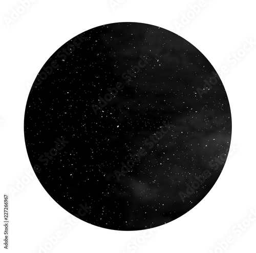 © Khaneeros, Naklejka premium Black and white of night sky with stars , universe, space texture. Watercolour cosmos circle.