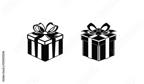 © Isratjahan, Obraz premium Black and White of Two Presents, Striped and Checked, Tied with Bows