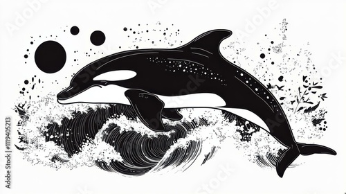 Obraz premium Black and White Orca Leaping Through Waves