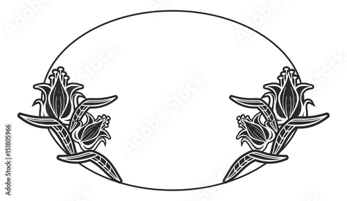 © LaFifa, Fototapeta premium Black and white oval label with flowers.