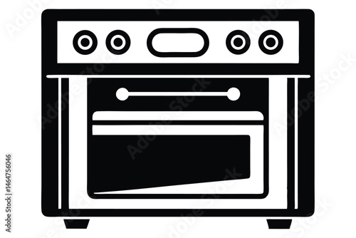 © pipp99, Obraz premium Black and white oven showcases modern cooking with simplistic design elements, featuring a visible internal rack
