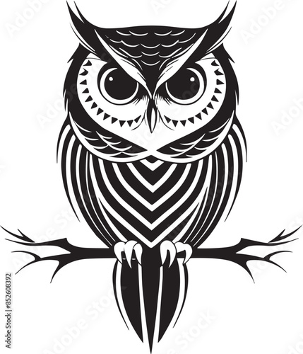 Fototapeta premium Black and white owl silhouette, vector illustration
