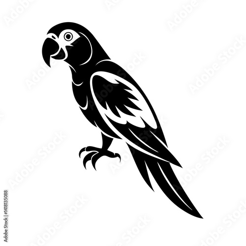 Obraz premium Black and white parrot vector illustration, a wild bird silhouette on a branch
