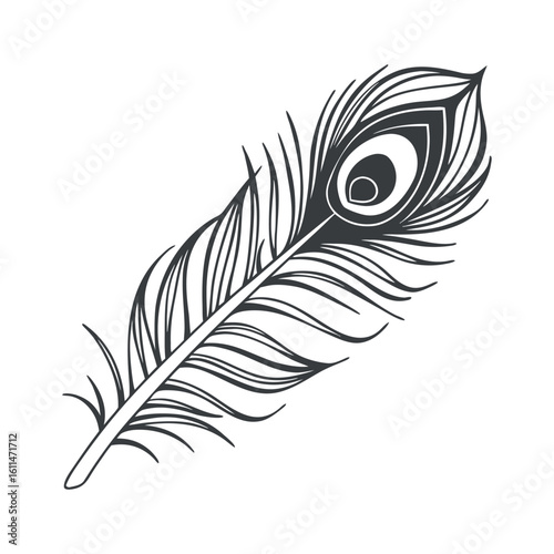 © Shanta, Obraz premium Black and White Peacock Feather Illustration bird feather