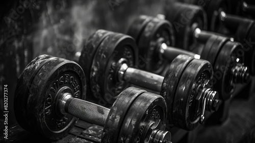 © VISUAL BACKGROUND, Naklejka premium Black and white photo of dumbbells.