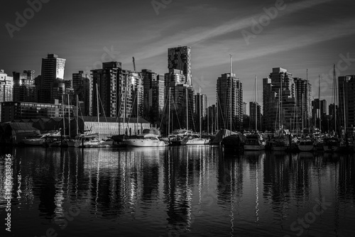 Fototapeta premium Black and white photo of Vancouver skyscrapers.
