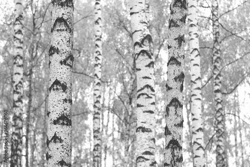 © yarbeer, Obraz premium black-and-white photo with white birches