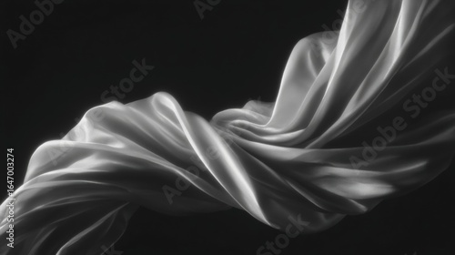 © Vitalii, Fototapeta premium Black and white photograph of a fabric that is flowing in the wind. the fabric appears to be made of a silky, silky material and has a smooth texture.