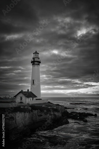 © borispain69, Naklejka premium black and white photography of a lighthouse