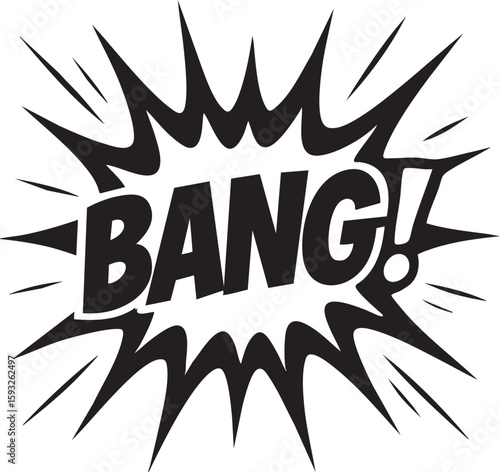 © KAZI DESIGN, Fototapeta premium Black and white pop art explosion with the word BANG! written inside. A retro comic book style vector graphic.