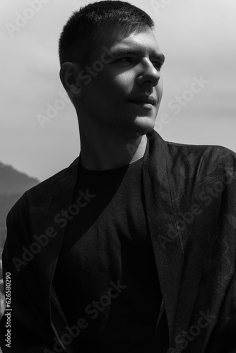 © ivancheremisin, Obraz premium black and white portrait of a guy close-up