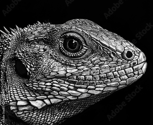 Fototapeta premium Black and white portrait of a lizard / reptile