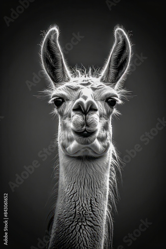 Fototapeta premium Black and white portrait of a llama.