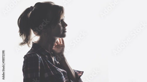 © fantom_rd, Naklejka premium Black and white profile of beautiful young girl