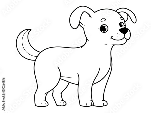 © Supharb, Fototapeta premium Black and white Puppy drawing, perfect for coloring, isolated on white.