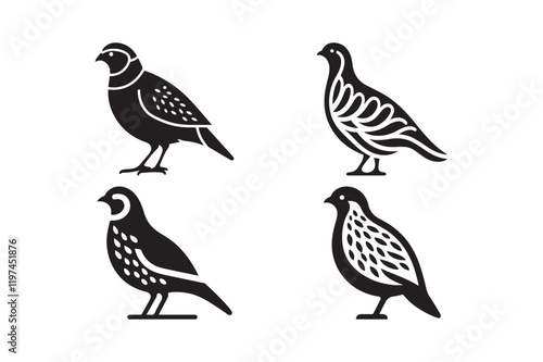 Fototapeta premium Black and White Quail Illustrations in Vector Style
