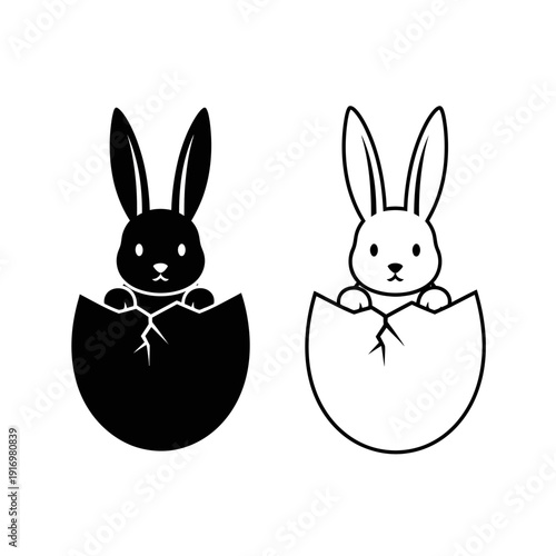 © Salmaakter, Fototapeta premium Black and white rabbit eggs easter illustration vector design Vector