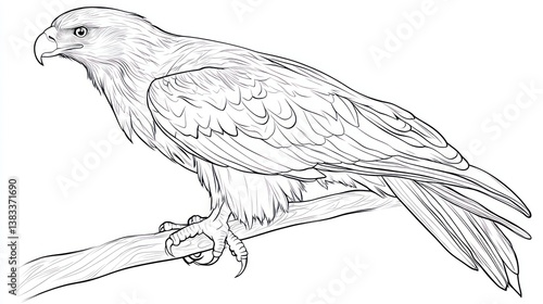 © Mundhut, Fototapeta premium Black and White Raptor Perched on Branch