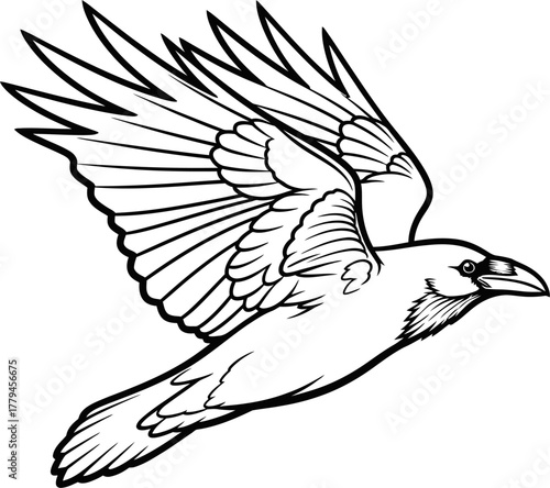 Obraz premium Black and White Raven Flying Silhouette Vector Illustration