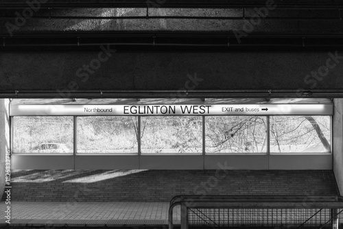 Fototapeta premium black and white representation, interior sign of Eglinton West subway...