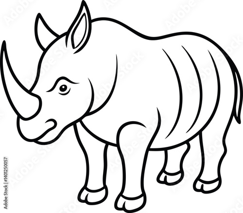 Fototapeta premium Black and White Rhinoceros Illustration for Coloring or Educational Material
