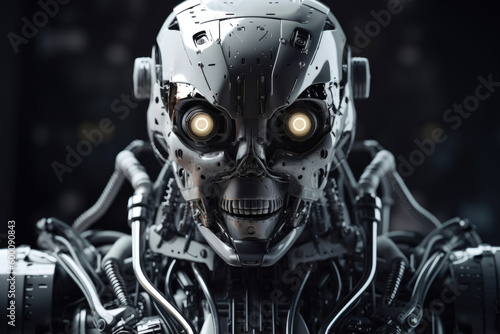 © Andrii , Fototapeta premium Black and white robot illustation. Generative AI