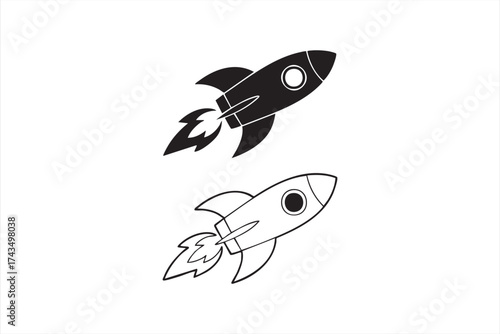 © MD.sahadat, Fototapeta premium Black and white rocket vector illustration for technology and innovation themes.
