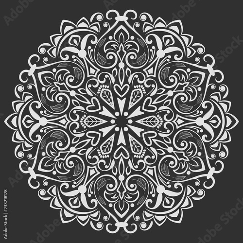 © More Images, Fototapeta premium Black and white round floral element vector illustration