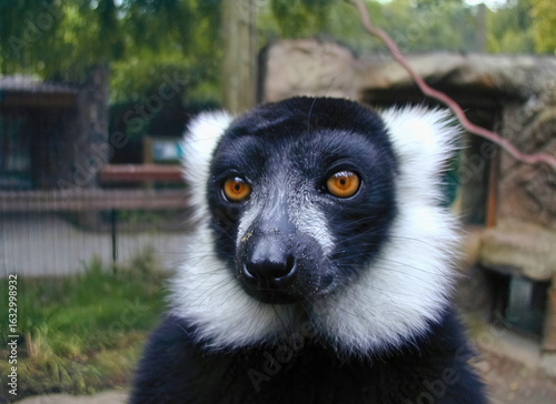 © Steam Cone Story, Fototapeta premium Black-and-White Ruffed Lemur Face Closeup