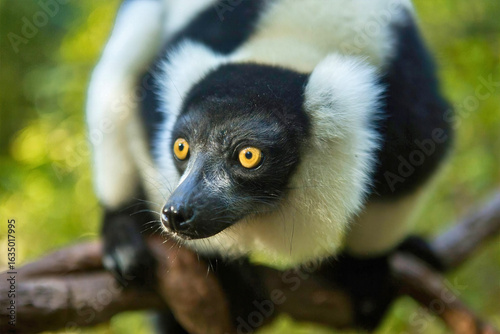 Obraz premium Black-and-White Ruffed Lemur on Branch