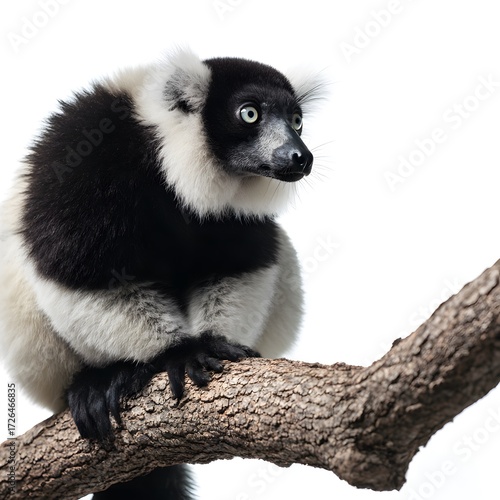 © Ayat, Obraz premium Black and white ruffed lemur perched on a tree branch