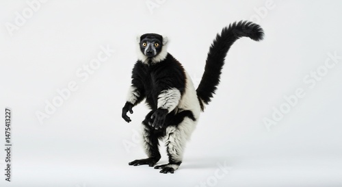 © Rafael, Fototapeta premium Black and white ruffed lemur standing madagascar wildlife animal primate zoo exotic mammal tail fauna fur
