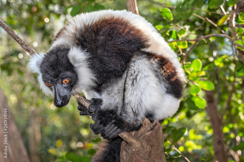 Fototapeta premium Black-and-white ruffed lemur, Varecia variegata, in its natural environment...