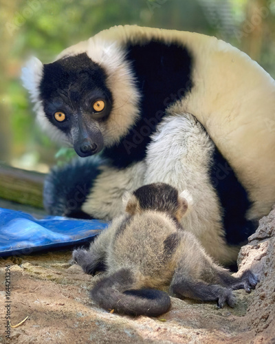 © Steam Cone Story, Fototapeta premium Black and White Ruffed Lemur with Infant
