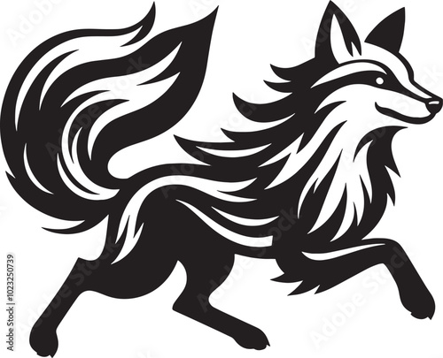 © MstSumi, Fototapeta premium Black and white running fox vector tattoo design silhouette