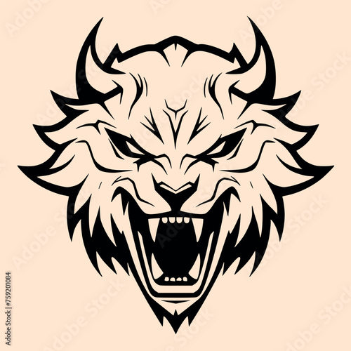 Fototapeta premium Black and White Sabertooth Outline Silhouette Ornament Vector Art for Logo...