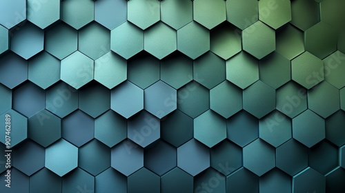 © Thanakorn, Naklejka premium Black and white seamless geometric pattern with hexagonal grid, honeycomb texture, and metal design for technology backdrop