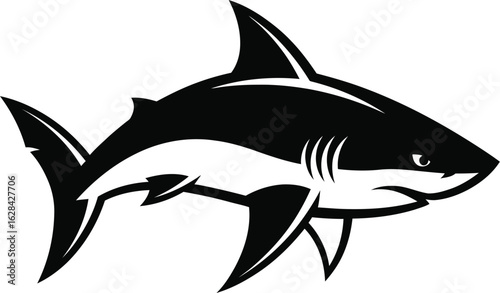 © Hamza, Obraz premium Black and White Shark Illustration on a Clean White Background