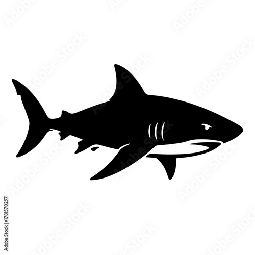 Obraz premium Black and White Shark Silhouette Vector, Ocean Predator Clipart