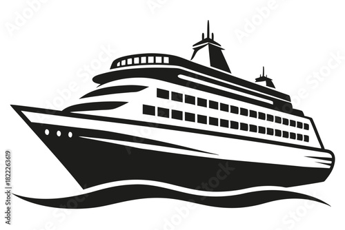 Obraz premium Black and white ship is sailing through the ocean waves in silhouette style