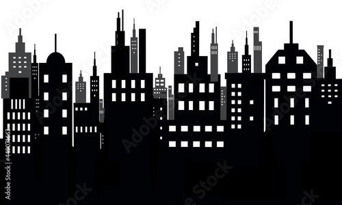 © zonik1, Fototapeta premium Black and white sihouette of big city skyline