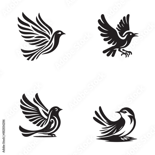 © Rashed Chowdhury, Obraz premium black and white silhouette bird icon
