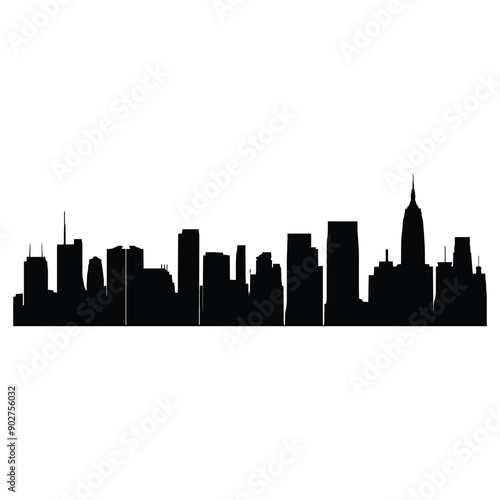 Obraz premium Black and white silhouette of a city skyline.