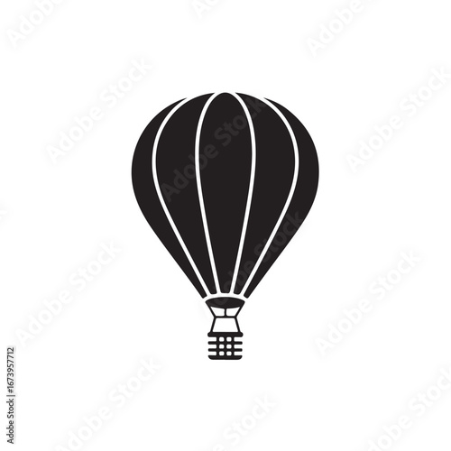 Naklejka premium Black and white silhouette of a hot air balloon with a basket